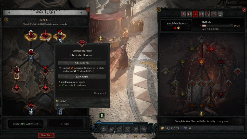 War Plans; basitçe oyun içinde yapabileceğiniz etkinlikleri önceden planlayıp, sıralayarak yapmanızı sağlıyor. Bu şekilde tamamladığınızda sizi cömert şekilde ödüllendirirken, aynı zamanda bütün bu etkinlikler için birer ilerleyiş ağacı da oluşturuyor. War Plans’ı tamamladıkça yenisini planlayıp, tekrar başlayabiliyorsunuz. Her tamamladığınızda etkinlikler kısmında özel puanlar kazanıp, yükselen seviyelerde yeni düğümleri açarak ağaçta aşağı doğru inebiliyorsunuz. Bu da oyun sonundaki “ne yapsam” karmaşasına güzel, akıllıca bir çözüm getiriyor.