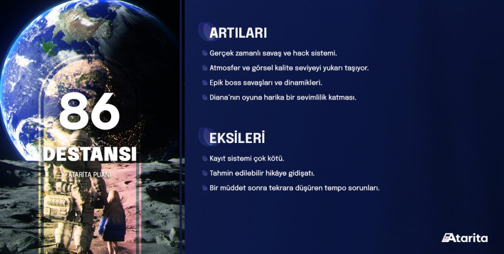 Bu sayede savaşlar sıradan olmaktan uzaklaşıyor. Hem taktiksel bir derinlik katıyor hem de sizin savaş anında yeni sistemler üzerinde durmanızı sağlıyor. Klasik olmaktan kurtularak adeta oyun ekosistemine yeni bir deneyim vadediyor. Sürekli aktif düşünme yapmalı, reflekslerinize güvenip hack işlemi yaparken hasar yememeye çalıştığınız bir süreç benimseniyor. Böylelikle hem Hugh açısından hem de Diana açısından oyuncuyu döngüde tutan bir savaş sistemi ortaya çıkıyor. Bunu takdir etmem gerekiyor dostlar.